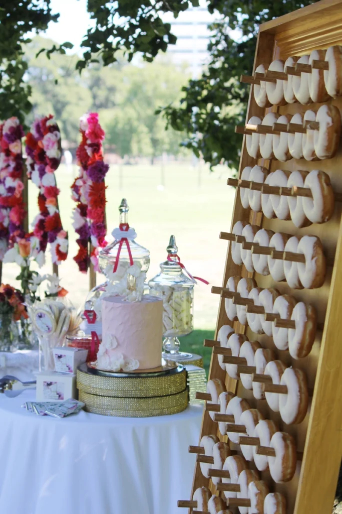 That’s where The Candy Buffet Company stepped in. We created a custom donut wall and candy buffet that became the star of the party. Guests were amazed, with some thinking the donuts were for sale! Kids raided the nearby playground to sneak treats, while everyone else delighted in the vibrant display.